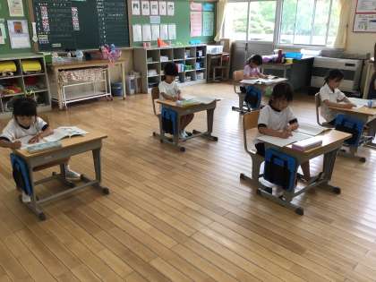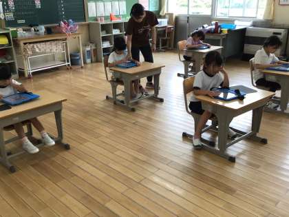 最後の残り時間に「美文字」のアプリで、カタカナとひらがなをタブレット上で書きました。なかなか美文字と判断してもらえませんが諦めずに書いていました。美文字判定をされている子もいました。