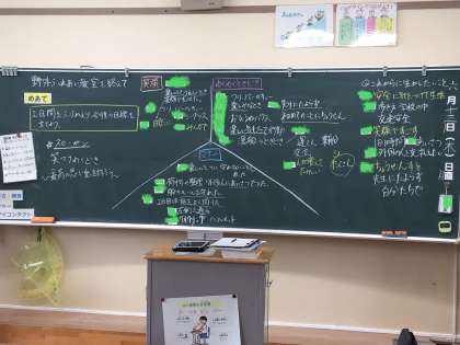 6月13日 5年生 野外ふれあい教室振り返り 公開日 2024/06/13 更新日 2024/06/13 お知らせ キャッチフレーズ「笑マナわくどき」で、振り返りをしていました。 人によって、一番の思い出は違うようでしたがどの活動も充実していたようです。 海という自然を感じ、仲間の新たな良さを知り、その仲間と協力しながら笑顔いっぱになり、マナー等も考えて行動して充実した2日間を過ごせたということです。これからの生活にも生かしていこうという気持ちも感じる振り返りでした。