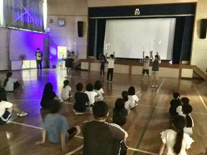 5年生は「トーチワーク」の発表でした。体育館を暗くして発表したのでわかりにくいと思いますが、とてもきれいでした。