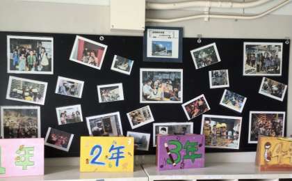 子どもたちの昇降口に入って、左側の掲示板に、今年度の全校ふれあい学習の写真が掲示されました。学校におみえの時にご覧ください。