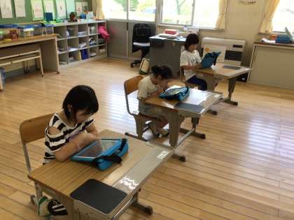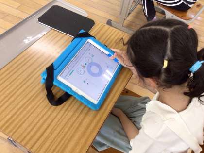 前時にプールに入ったので、少し休憩を兼ねて授業の最初にキュビナで復習問題を解いています。