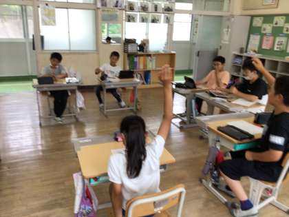 昨年度の6年生が作った看板からわかることや調べてわかったことを発表しました。