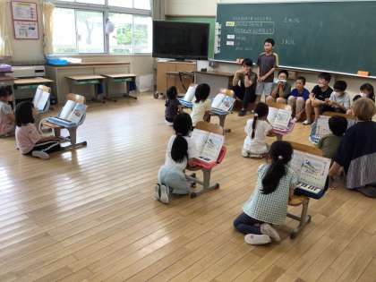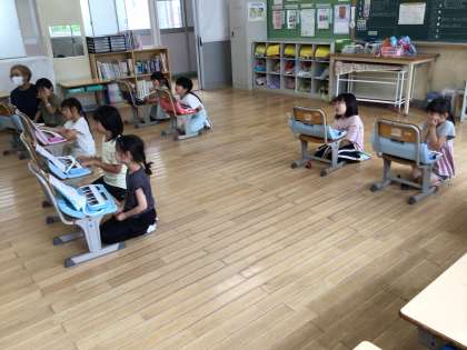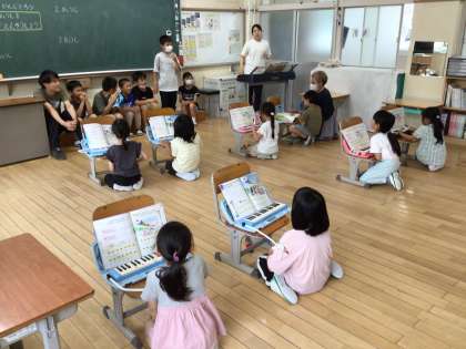 1年生は、一生懸命、「ひのまる」を鍵盤ハーモニカで合奏しました。