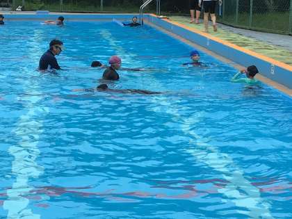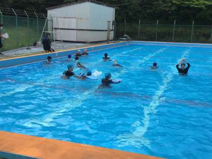 水泳の技術が少しずつ上がっていることがわかり、うれしそうです。