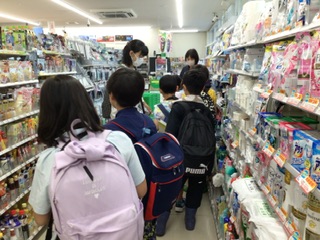社会科の学習で、ふじバスに乗って飯野地区のファミリーマートと藤岡交流館に行きました。ファミリーマートでは、店長さんに店を案内してもらったり、質問に答えてもらったりしました。秘密のバックヤードにも入れていただき、大興奮の子どもたちでした。