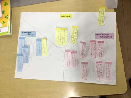 「これとこれは同じだね」「これはこれにつながるね。矢印を書いておこう」など、話し合いながらまとめています。