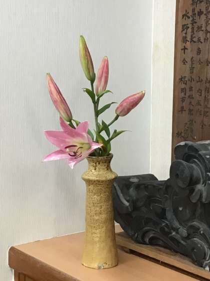 昨日、お庭にゆりが咲いたからと、とても立派なゆりの花を届けてくださった方がみえました。