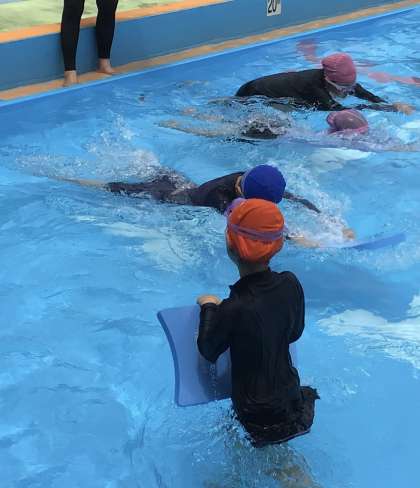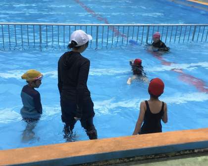蹴伸びでどこまで行けるかな、距離も伸びましたが、顔をつける恐怖が無くなったり、息をせずにいられる時間が長くなったり、バタ足が上手になったりしました。