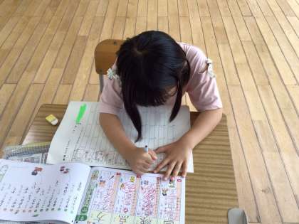 漢字のドリルコンテストの漢字を1文字1文字丁寧に書いていました。