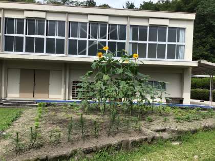 地域の方からいただいたひまわりがすくすく生長し、花を咲かせました。