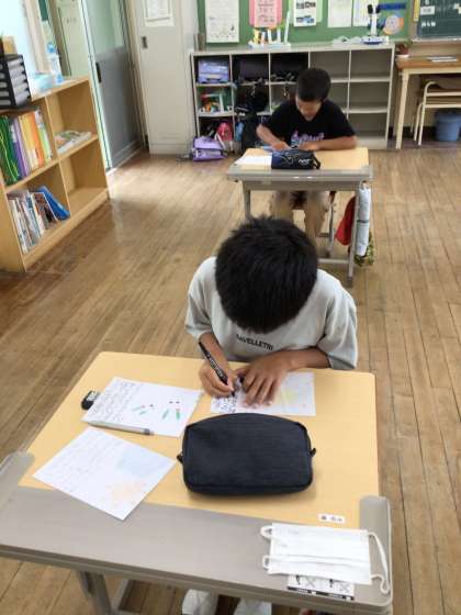 原稿用紙に書いている子とタブレット上で書いている子がいました。