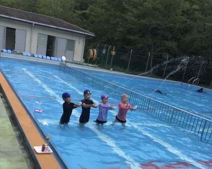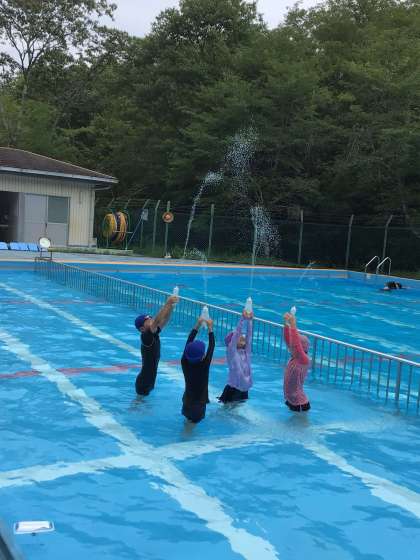 水鉄砲でどれだけ水がとぶかチャレンジしました。 結構、とびました。