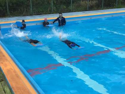 クロールの手を歩きながら確認した後は時間いっぱい泳いでいます。
