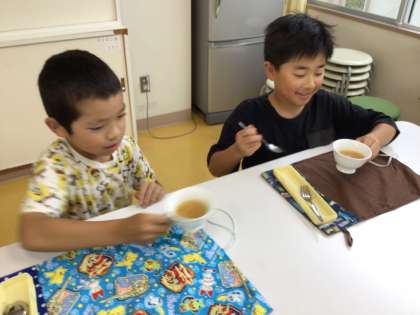 2グループに分かれて作ったので、材料は同じでしたが少し味の違う玉ねぎスープができました。