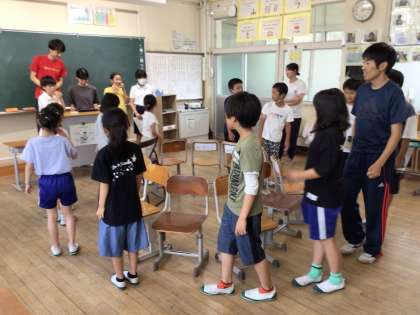 5年生教室では、椅子取りゲームで盛り上がりました。