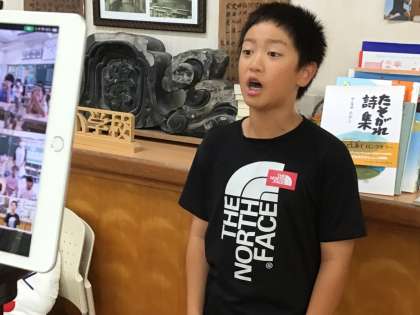 7月19日 児童集会 スピーチ1 公開日 2024/07/22 更新日 2024/07/22 お知らせ 今回の児童集会は、熱中症予防のため、オンラインで行いました。 まずは、5人の子たちが順番にスピーチをしました。 原稿を見ずに、「プールで水泳を頑張ってたくさん泳げるようになったこと」「一輪車の練習を昨年度から頑張っていろいろなことができるようになったこと」「佐久島に行った思い出や自分たちで動けるように頑張ったこと」をスピーチしていました。