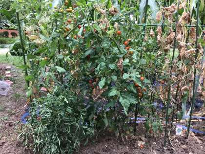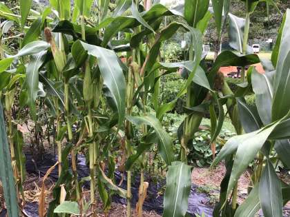 プチトマトやナス、トウモロコシができています。