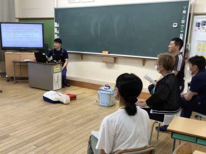 喉に詰まったものがなかなか取れない場合、とにかく胸部圧迫をすることが大切で、胸部圧迫で喉の詰まりものが出ることもあることを教えていただきました。AEDを装着するのを嫌がらない限り、AEDはすぐに装着することが大切です。救急車の誘導方法なども丁寧に教えていただきました。