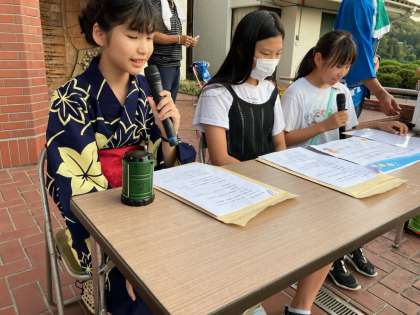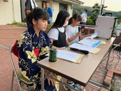 6年生の子たちが司会者として、活躍していました。 地域のお祭りで活躍しています。