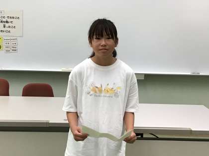 一人目の子はチャレンジしたことを二つ紹介しました。一つ目はお祭りでアナウンスの仕事をやり遂げたことです。見に行きましたが長文をすらすら言っていました。二つ目はお家の方に許可をとって友達とショッピングモールに行ったことです。いろいろチャレンジすることは大切ですね。