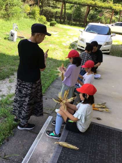 収穫した後、皮のむき方などの説明を聞いて、黙々と作業をしました。