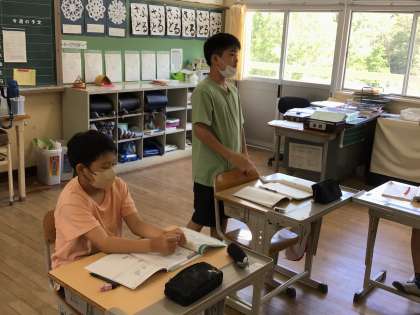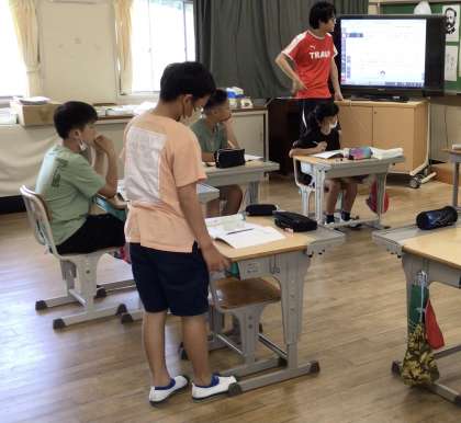 階段の段数と正方形の数の関係を見付けて、何段でも正方形の数がすぐ見付かるようにしています。