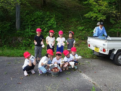 御作山の中に入って栗を撮りました。 みんなで集合写真も撮りました。