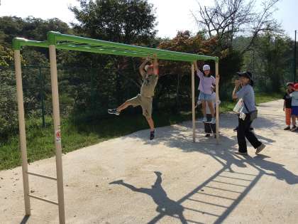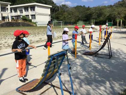 次に、雲梯です。「前の雲梯より高いな」「すべるな」と言いながら、前に進んでいました。