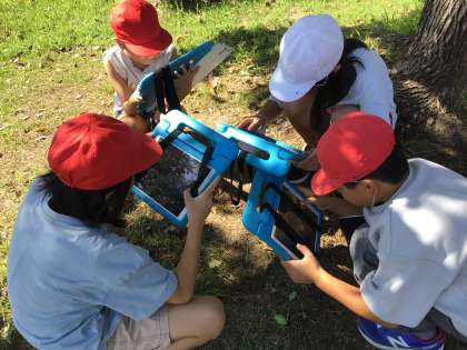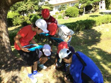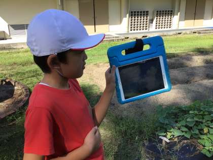 どんな生き物がどこで何をしていたかがわかる写真をタブレットで撮っています。