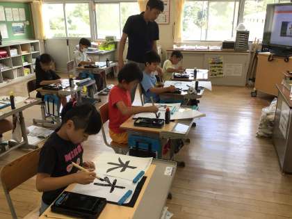 なかなか部分練習が思うようにいかない子もいましたが、「木」と「麦」を書く段階になったら姿勢良く集中して書いていました。