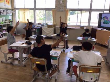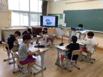 花の構造や名称を教科書を大型テレビに移して、確認し合っていました。