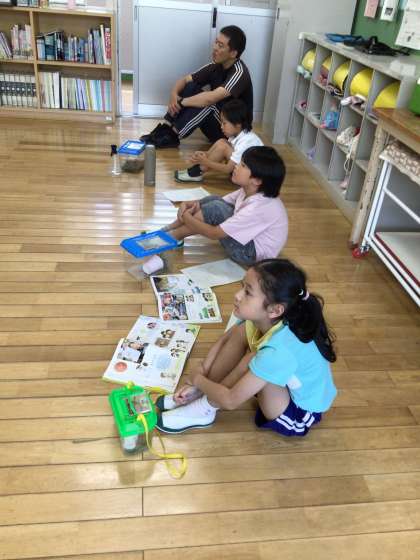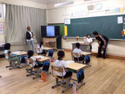 虫について調べたことを一人一人大型テレビに映して発表をしました。発表を聞いていた子が質問や感想も伝えていました。