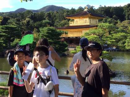 金閣寺の前では、集合写真が撮れないので、慌てて撮りました。