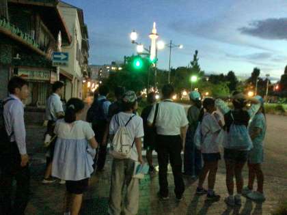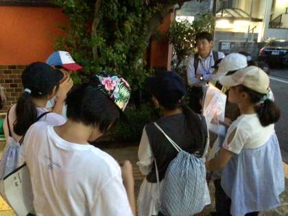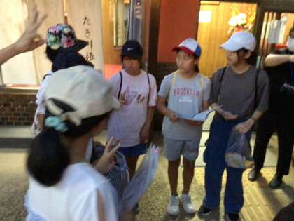 京都駅に向かう前に、旅館の前で、京都駅についてのクイズをして、京都駅に向かいました。