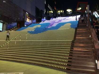 京都駅に着き、階段のイルミネーションを見て、駆け上がりました。