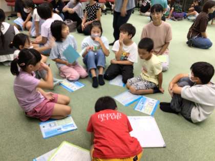 講師の方のお話を聞いた後、家と学校でできることを学年で分かれて話し合いました。