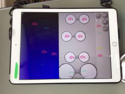 1年生は「ビスケット」を使って、魚を泳がせました。