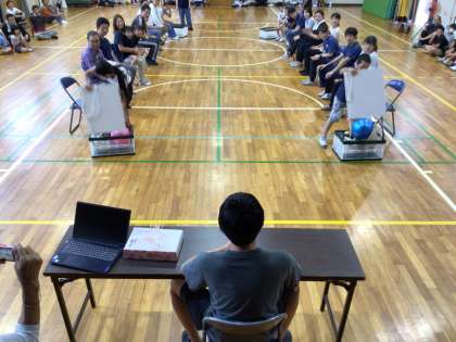 ボードに名前を書いて回します。