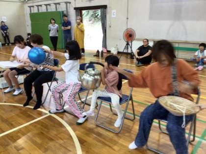 教頭からは「やかんの側面を擦ってジーニーと言う」、校長からは「◯◯、大好き。マラカスを持って踊る」というお題が出されました。
