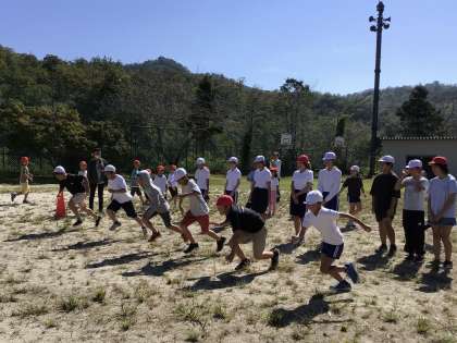 もも上げをしてから、音を聞いてすぐに足を前に出す練習をしました。