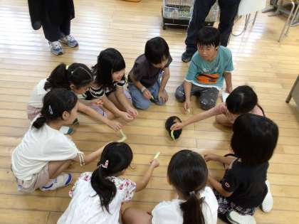みんなが「ハナちゃん」と読んで、誰のところに来るかをやってみました。