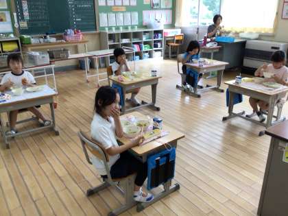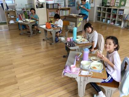 2年生の子たちは、一生懸命食べている子、食べながら微笑む子がいました。