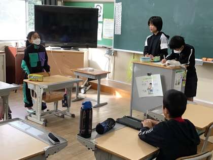 放送委員会は、毎日、給食の放送をしていました。一人で機械操作から、音楽の選曲、献立メモなどを立派にやり遂げていました。