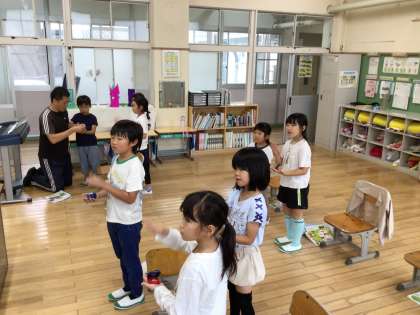 歌を歌ったり、3グループに分かれて違うリズムを奏でたりしました。