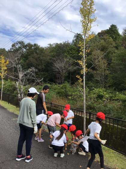 まだ赤い葉っぱが少ない感じもしましたが、色とりどりの葉っぱや大きさの違う葉っぱをたくさん集めました。きのこがたくさん生えていて興味津々でした。集めた葉っぱで下敷きを作るらしいです。楽しみです。