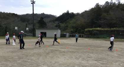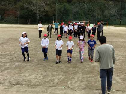 次の演技で、まっすぐ一輪車をこぐ子は鉄棒の方を見て左へ、コーンのところでくねくねしながら一輪車をこぐ人は右へ移動します。
