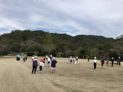 次の技は2人ペアで回ります。熱盛隊が補助をするチームもあります。