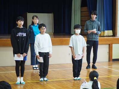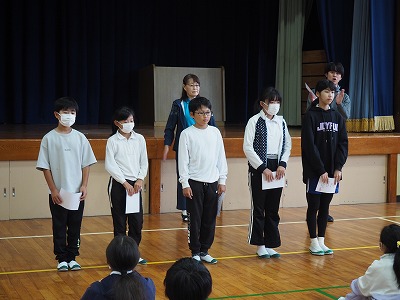 1枚目の写真は学級代表(3年生、4年生、5年生、6年生)の任命です。3年生の学級代表が残念ながら欠席でした。後日、行います。