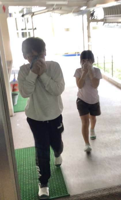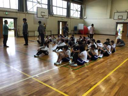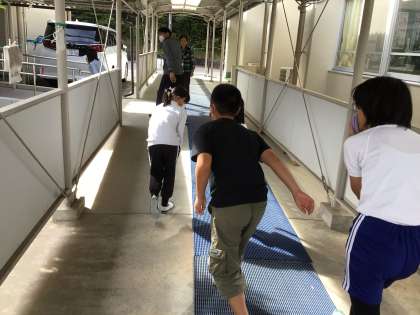 「職員室で火事が発生しました。体育館に避難しなさい」という指示で、ハンカチで鼻と口を押さえて静かに速やかに避難しました。担任の先生が人員点呼をし、教頭に報告しています。この後、教頭は校長に報告して、校長が全員無事に避難したことを全体に連絡しました。