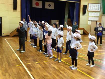 綱引きの前に、「ゴーゴーゴー」を歌いました。